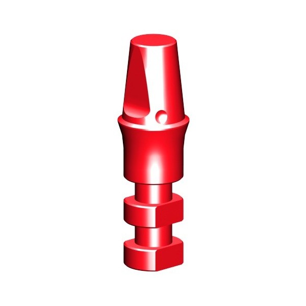 Regular dental implant analog for DIO's solid dental implant abutment prosthetics. Solid abutment analogs are used in dental laboratories in forming an abutment replica onto which the prosthetic can be fabricated. Once in place, the abutment analogs protrude from within the stone model mock-up of the patient's jaw.