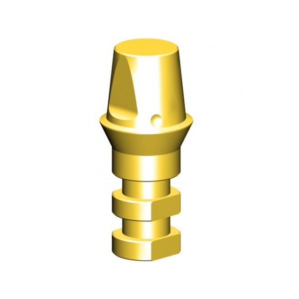 Wide dental implant analog for DIO's solid dental implant abutment prosthetics. Solid abutment analogs are used in dental laboratories in forming an abutment replica onto which the prosthetic can be fabricated. Once in place, the abutment analogs protrude from within the stone model mock-up of the patient's jaw.